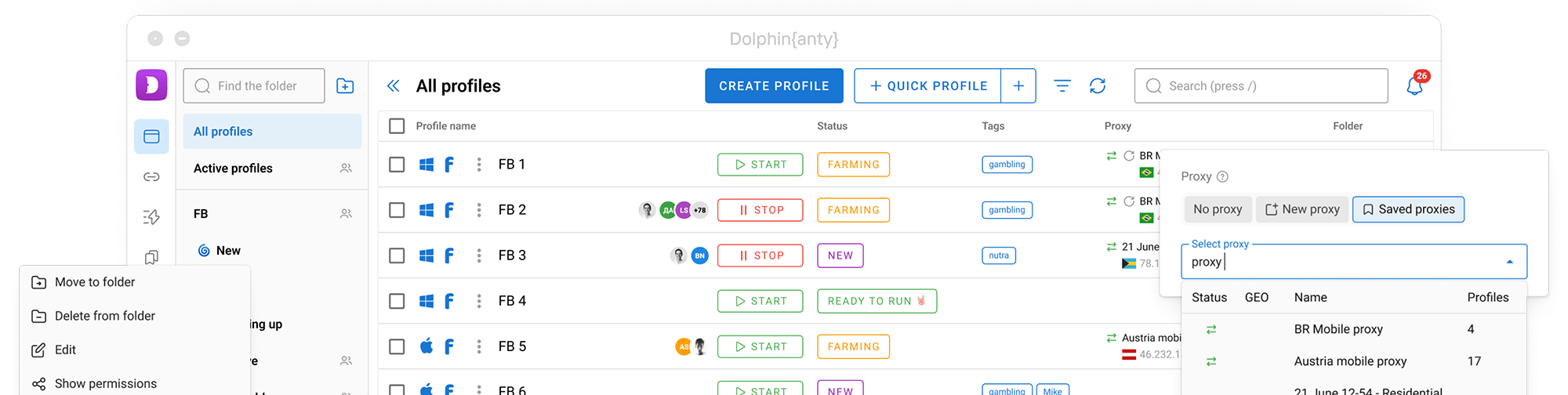 We have been using Dolphin{anty} for a little over a year, and at the moment, I am satisfied with everything. They always go out of their way to help and assist in solving difficult situations. Even when you need to automate certain actions through the API and you can’t figure it out, they send you a working piece of code in support. Unfortunately, competitors not only lack this kind of support, but many of them also lack adequate API documentation. Centralized management of bookmarks and extensions is still not implemented by some, Dolphin{anty} has had that feature the moment it was launched (if my memory serves me right). Profile tables, tags, statuses, are very convenient. The browser has quick response and profile launch. It takes just 1-3 seconds, and the profile is open and ready to work. As far as fingerprint handling is concerned, there are certainly some nuances, but they are tolerable. You can overlook these nuances, especially when it comes to working with fb, which, for the most part, doesn’t care if something gets exposed somewhere, one love.
